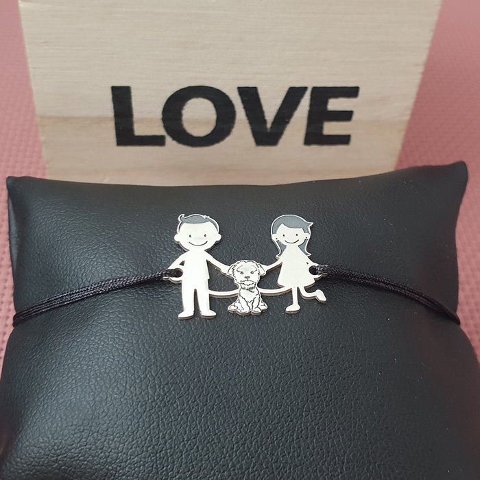 Bratara Familie – 3 Membri cu Bichon – Argint 925, snur negru
