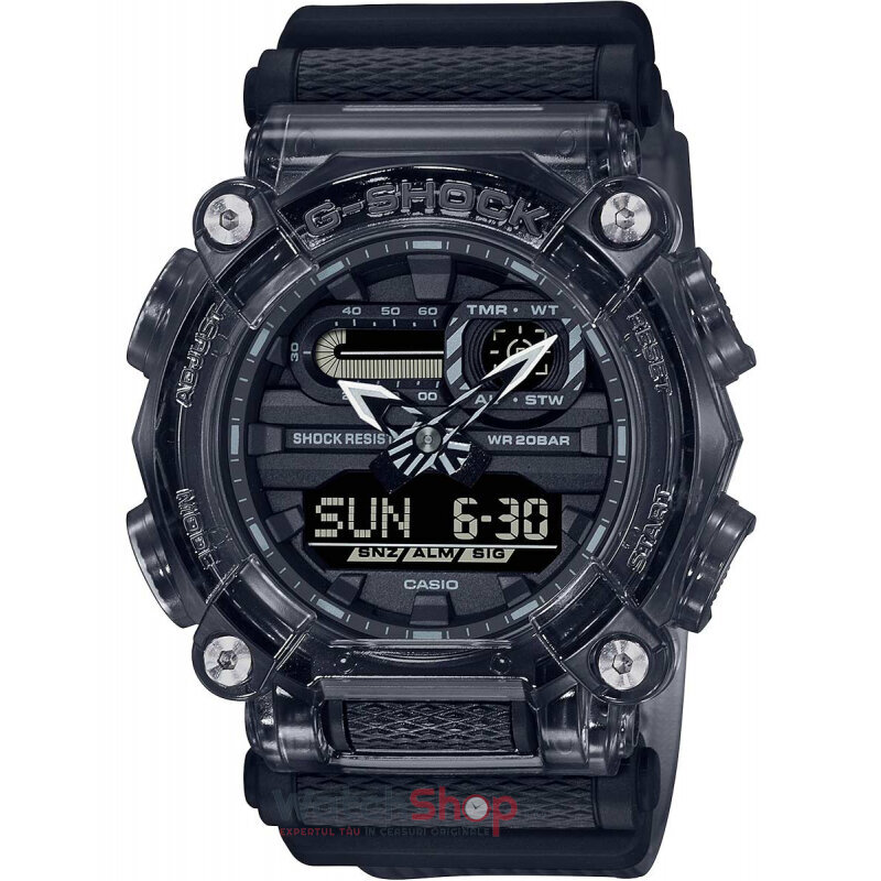 Stil: Fashion SportColectia: G-ShockTip: BarbatescDisplay: Analog si DigitalMecanism: QuartzDenumire mecanism: 5637Provenienta mecanism: JaponezRezistenta la apa: 20 ATMIndica: Ora, minute, secunde, Data, Ziua saptamanii, Luna, Iluminare, Afisaj 12/24, AlarmaCuloare cadran: NegruMaterial geam: Cristal mineralTip citire cadran: LiniiForma carcasei: RotundaMaterial carcasa: RasinaCuloare carcasa: GriDimensiune carcasa: 49.5 x 52.8 mmGrosime carcasa: 16.90 mmMaterial curea/bratara: RasinaCuloare curea/bratara: NegruCuloare interior curea/bratara: NegruLatime curea/bratara (telescop): 30.6 mmSistem inchidere: Catarama standardFinisaj curea/bratara: MataCalendar: DaData: DaAlarma: DaIluminare: DaAlte detalii: Logo pe cadran, catarama, capac spate, Culoare markeri: Negru, Gri, Culoare aratatoare: Gri, Precizie mecanism: 15 sec/luna, Baterie: CR1220,