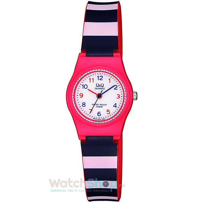 Stil: Fashion CasualColectia: KidsTip: CopiiDisplay: AnalogMecanism: QuartzDenumire mecanism: Miyota 2035Provenienta mecanism: JaponezRezistenta la apa: 10 ATMIndica: Ora, Minute, SecundeCuloare cadran: AlbMaterial geam: AcrilTip citire cadran: Linii si Cifre arabeForma carcasei: RotundaMaterial carcasa: RasinaCuloare carcasa: RosuDimensiune carcasa: 24 mmGrosime carcasa: 8.5 mmMaterial curea/bratara: RasinaCuloare curea/bratara: Bleumarin si Mov deschisCuloare interior curea/bratara: RosuLatime curea/bratara (telescop): 12 mmCircumferinta curea/bratara: 19.7 cmSistem inchidere: Catarama standardFinisaj curea/bratara: MataDesign curea/bratara: NetedaAlte detalii: Logo pe cadran, catarama, capac spate, Culoare markeri ora: Albastru si Rosu, Culoare aratatoare: Albastru si RosuGreutate: 15 grame