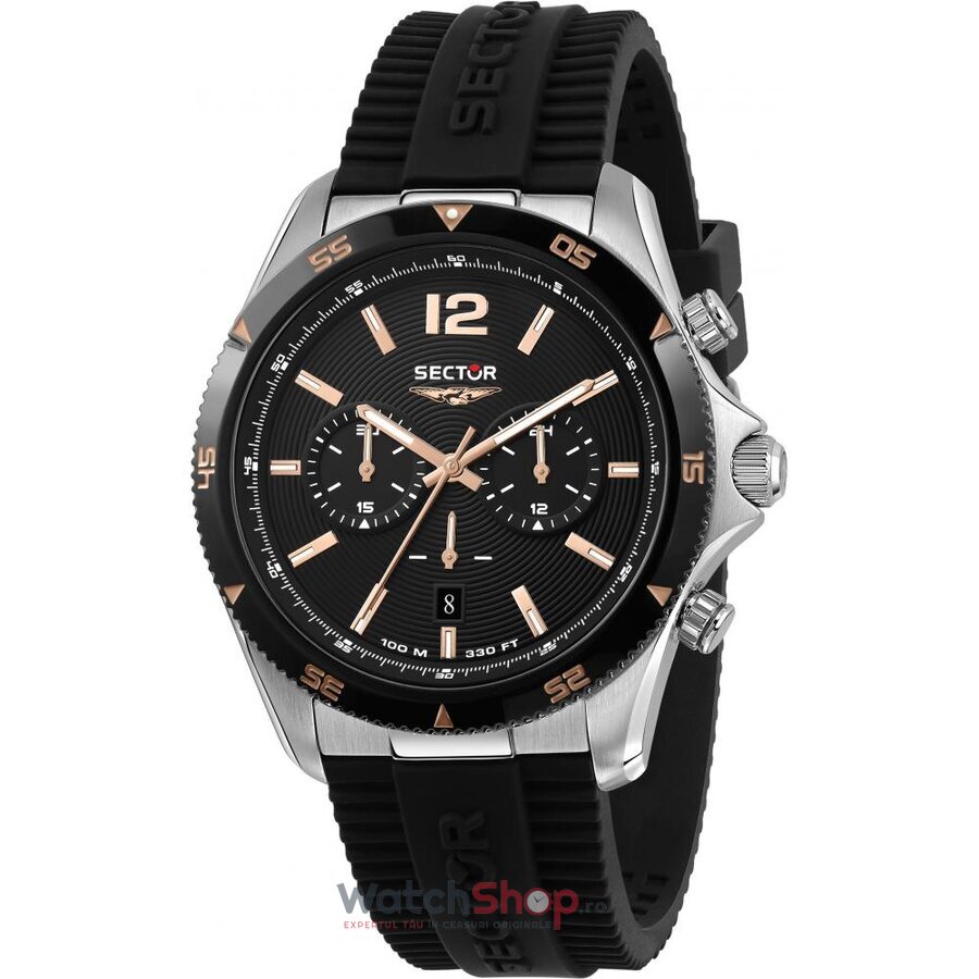 Stil: Fashion casualColectia: 650Tip: BarbatescDisplay: AnalogMecanism: QuartzRezistenta la apa: 10 ATMIndica: Ora, minute, secunde, Data, Cronograf, Tahimetru, Afisaj 12/24Culoare cadran: NegruMaterial geam: Cristal mineralTip citire cadran: LiniiForma carcasei: RotundaMaterial carcasa: Otel inoxidabil placat PVDCuloare carcasa: Negru si ArgintiuDimensiune carcasa: 45 mmGrosime carcasa: 11.60 mmMaterial curea/bratara: SiliconCuloare curea/bratara: NegruSistem inchidere: Catarama standardFinisaj curea/bratara: MataCronograf: DaData: DaAlte detalii: Logo pe cadran, coronita, catarama, capac spate, Culoare markeri ora: Aur roz, Culoare aratatoare: Aur roz, Aratatoare si markeri cu insertii luminiscente, Caseta data in dreptul orei 4:30, Precizie mecanism: 15sec/luna,