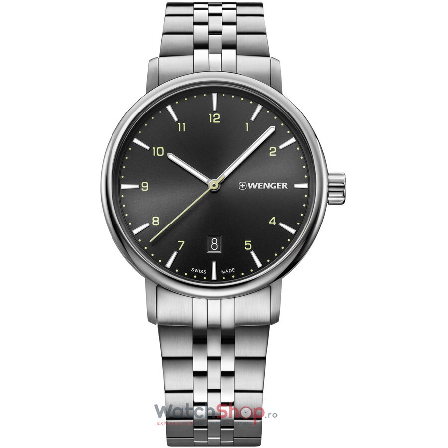 Stil: CasualColectia: MetropolitanTip: BarbatescDisplay: AnalogMecanism: QuartzProvenienta mecanism: ElvetianRezistenta la apa: 10 ATMIndica: Ora, minute, secunde, DataCuloare cadran: NegruMaterial geam: Cristal mineralTip citire cadran: Cifre arabe si LiniiForma carcasei: RotundaMaterial carcasa: Otel inoxidabilCuloare carcasa: ArgintiuDimensiune carcasa: 40 mmGrosime carcasa: 9 mmMaterial curea/bratara: Otel inoxidabilCuloare curea/bratara: ArgintiuCuloare interior curea/bratara: ArgintiuLatime curea/bratara (telescop): 20 mmCircumferinta curea/bratara: 20 cmSistem inchidere: Catarama tip flutureFinisaj curea/bratara: Mata si LucioasaData: DaAlte detalii: Logo pe cadran, catarama, capac spate, Culoare aratatoare: Argintiu, Culoare markeri ora: Argintiu, Aratatoare cu insertii luminescenteGreutate: 110 grame
